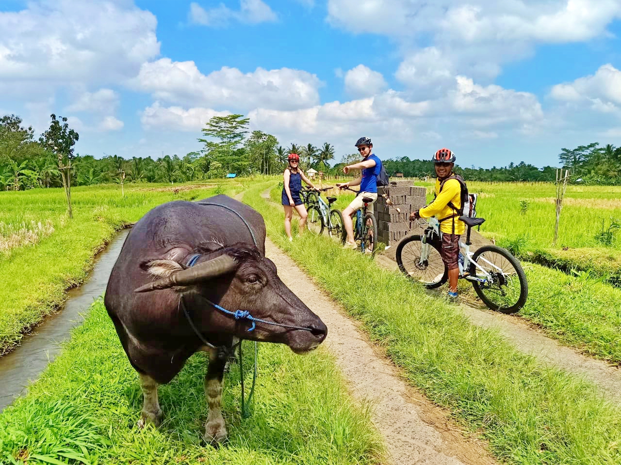 Then you will cycle along picturesque roads linking charming traditional villages taking breaks whenever you wish to capture magical moments with your camera. Throughout the ride, your cycling guide will enrich the journey with fascinating stories and insights about local life. A refreshing stop at another Balinese family’s home will be the perfect opportunity to enjoy a young coconut freshly picked from the garden just what you need to recharge before getting back on the saddle. Your adventure will end with a delicious local lunch (included) served with an incredible view over the rice terraces the perfect way to conclude this unforgettable time spent together.