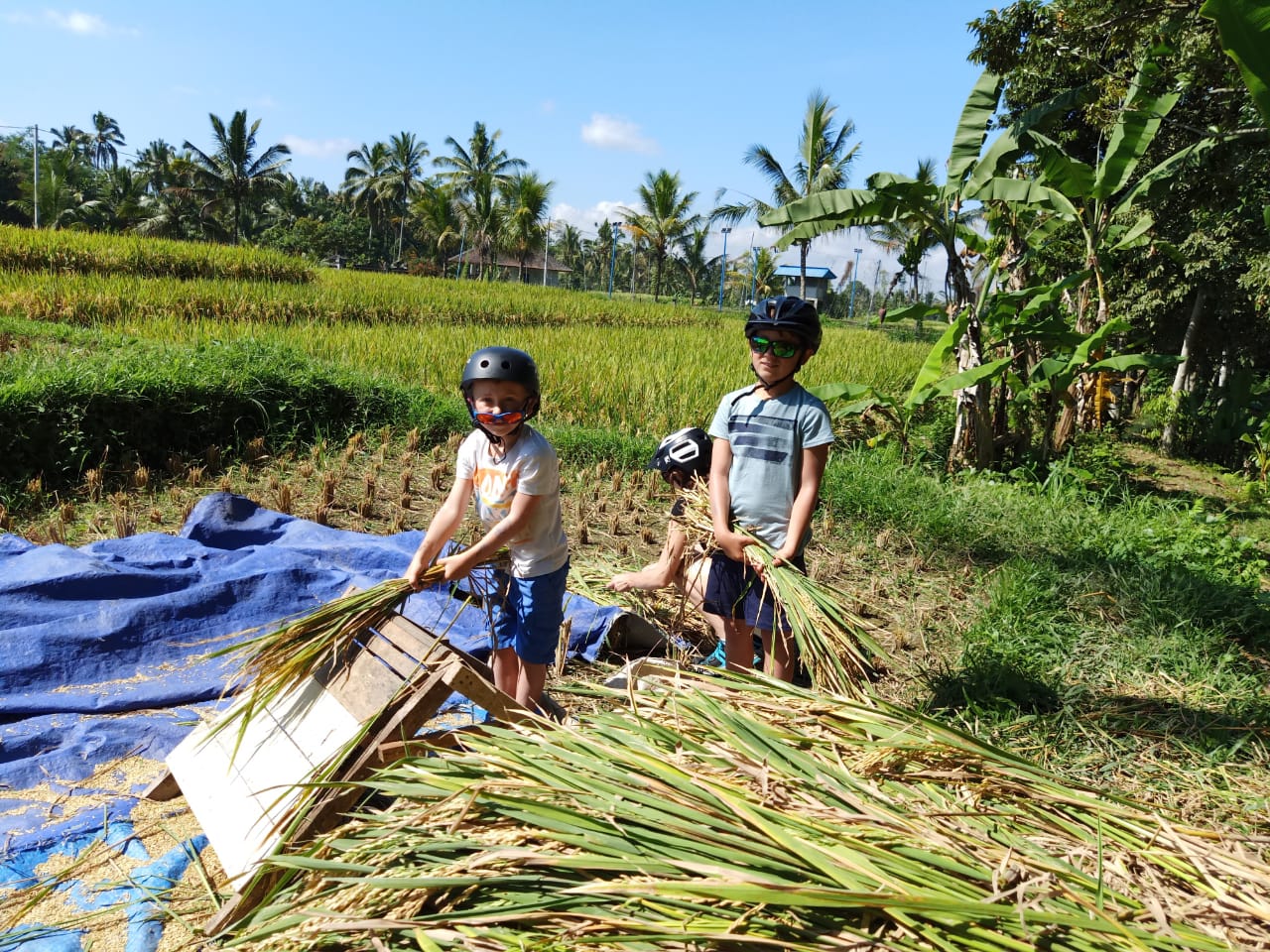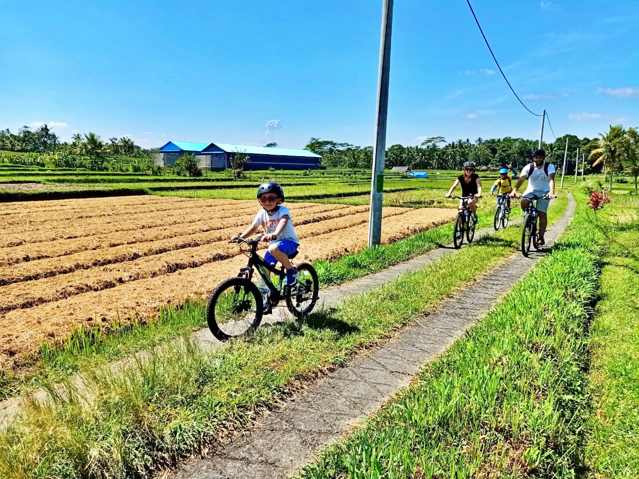 Step away from the crowds and immerse yourself in a Bali few ever see. Our cycling tour through the heartland of Tabanan takes you where emerald rice terraces meet majestic mountains, and where the pace of life is guided by tradition.You won’t just observe Bali, you will experience it. Pedal through peaceful villages follow winding rivers and feel the serenity of the countryside. Be welcomed into a Balinese family’s home for a small brunch, learn the art of daily offerings and try your hand at traditional Balinese music. Meet farmers tending the paddies and if you wish, join them in their work a moment both simple and unforgettable. On school days step into a local classroom and witness the joy and curiosity of the students.